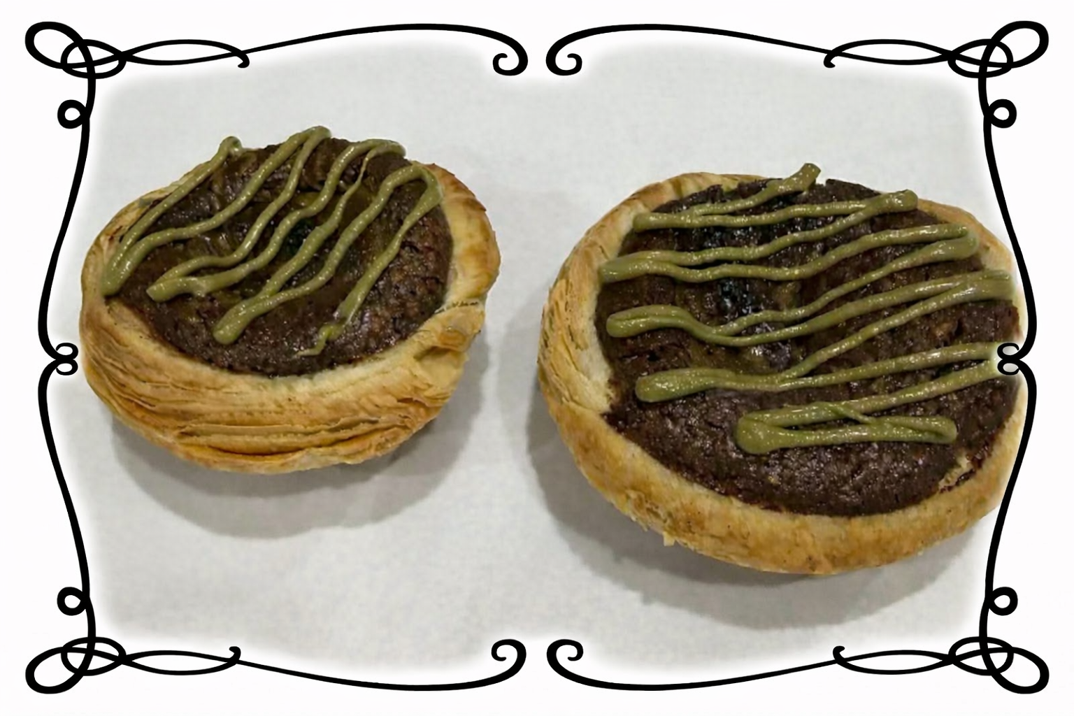 Chocolate meets Pistachio - baked into the filling and put on top.